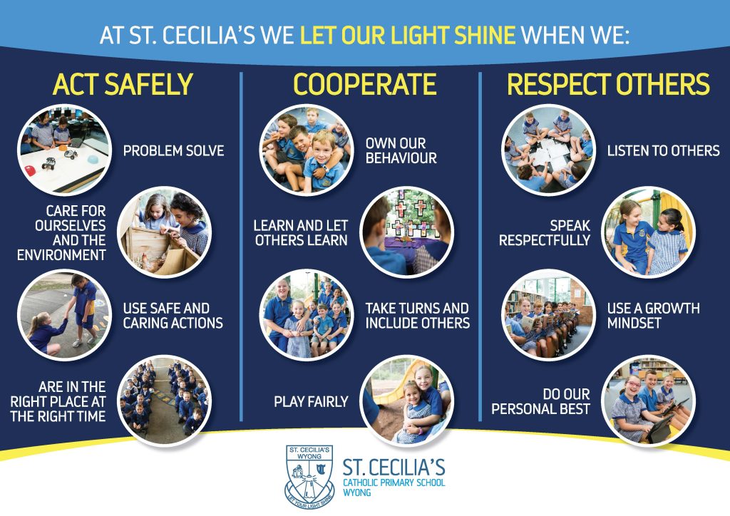 In line with this, all members of the school community share the responsibility to foster, encourage and promote positive behaviour and respectful relationships. At St Cecilia’s, we promote safe and supportive learning environments which maximises the teaching and learning time for all students.